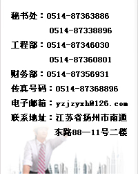 联系电话:0514-87363886 0514-87338896 联系地址:江苏省扬州市南通东路88—11号二楼 邮编:225002